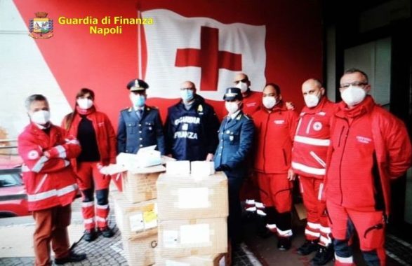 La Guardia di Finanza di Napoli ha donato in beneficenza 30.000 mascherine “per la collettività” alla Croce Rossa Italiana, Comitato di Napoli.
