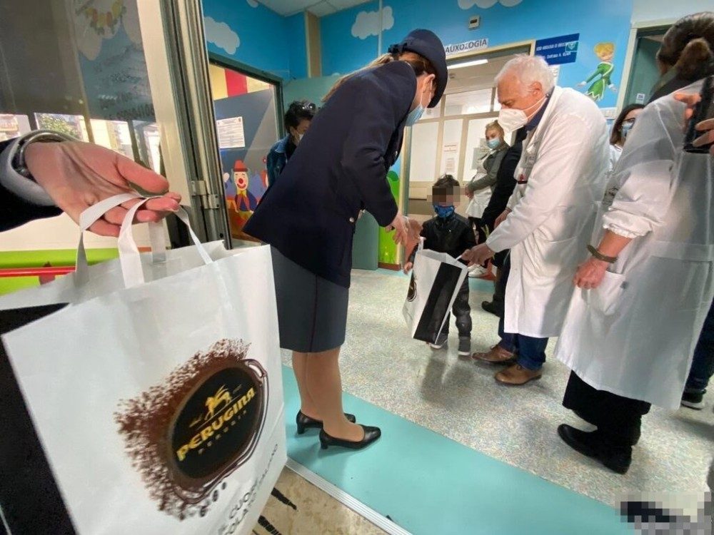 Questa mattina il personale della Questura di Napoli e del Compartimento Polizia Postale delle Comunicazioni della Campania, in collaborazione con la Nestlè Italia, ha donato uova di Pasqua di cioccolato e gadget della Polizia di Stato ai bambini in cura presso gli ospedali Santobono e Pausilipon.