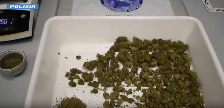 Durante la perquisizione è stato trovato un chilo di marijuana nascosto all’interno di una tapparella del magazzino. In un altro punto del locale, gli agenti hanno rinvenuto un secchio contenente sostanze chimiche sospette, potenzialmente utilizzate per modificare la droga in laboratorio.