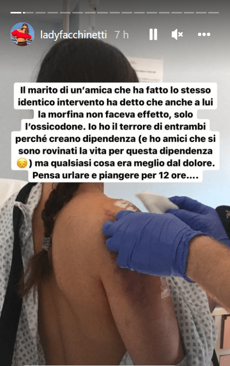 L’intervento è andato bene, ma i dolori post operatori sono lancinanti, come fa sapere su Instagram: “Oggi reagisco. Ieri pensavo di morire. Passato l’effetto dell’anestesia alle 9, abbiamo provato di tutto per mitigare il dolore: 5 mg di ossicodone, 7 mg di morfina + 2 mg ogni ora, litri di antinfiammatori e altri antidolorifici che ho perso il conto”.