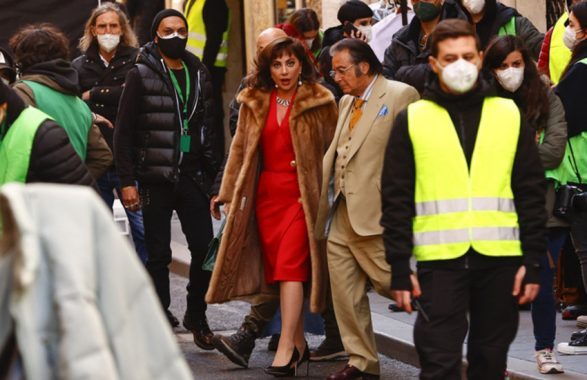 Continuano a Roma i ciak per il film “House of Gucci”, sulla morte di Maurizio Gucci, dopo la trasferta tra Milano e il lago di Como. Piazza di Spagna transennata e set blindato hanno visto Lady Gaga e Al Pacino in via Condotti, in pelliccia e abito rosso lei, abito beige con panciotto lui per interpretare i ruoli di Patrizia Reggiani e Aldo Gucci, circondati da una trentina di comparse e dai tecnici della troupe di Ridley Scott (tutti con mascherina d’ordinanza).
