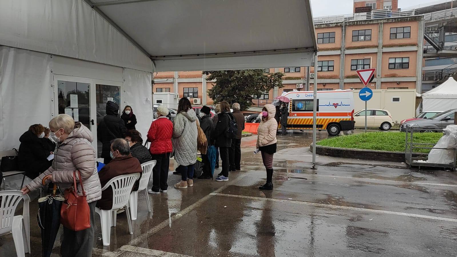 “Ho accompagnato – ci spiega il nostro amico – mia suocera, over 80, a farsi il vaccino. Appuntamento alle 10 per tutti, per cui non potevamo entrare tutti insieme. Pioveva. Siamo stati costretti ad aspettare sotto un struttura aperta, assembrati come si dice adesso, senza distanze. Con persone anziane, molto anziane, alcune in sedia a rotelle”.