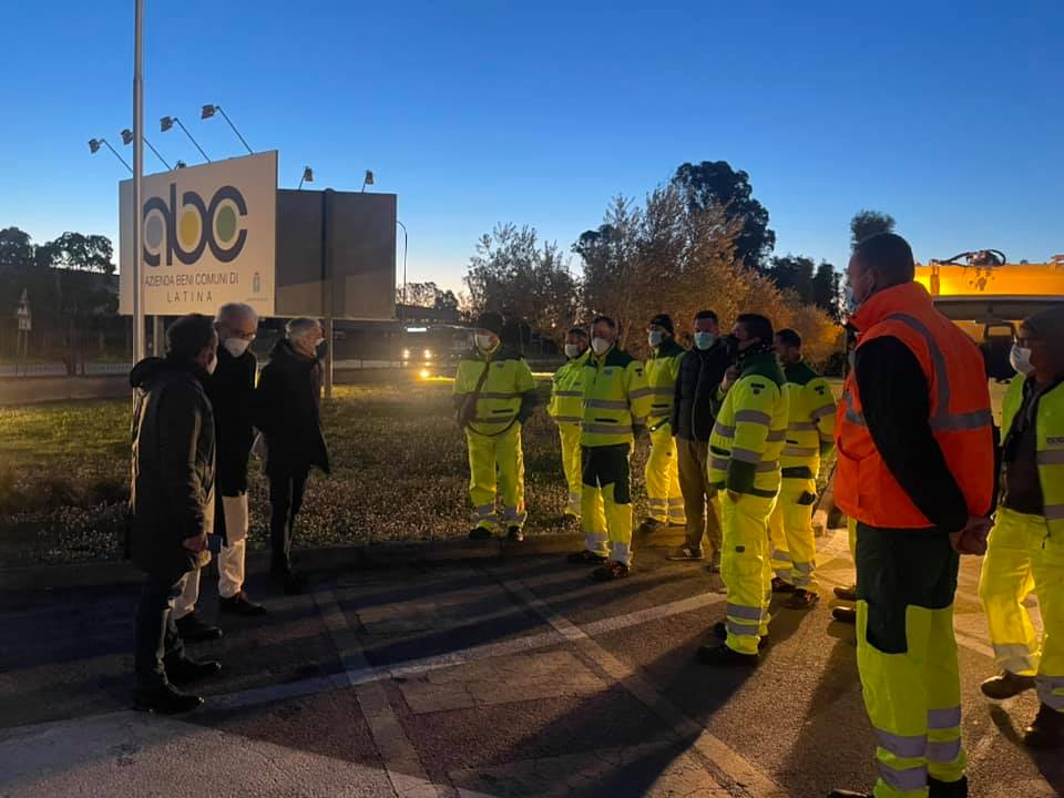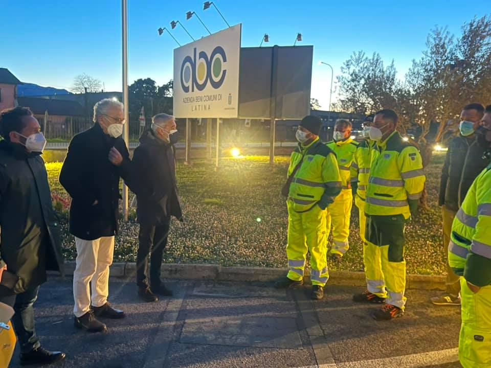 Ad accogliere i dipendenti di ABC, alle prime ore dell’alba di oggi presso la sede di via Monti dei Lepini, il Sindaco di Latina Damiano Coletta e l’Assessore all’Ambiente Dario Bellini e il Direttore Generale ABC Silvio Ascoli.