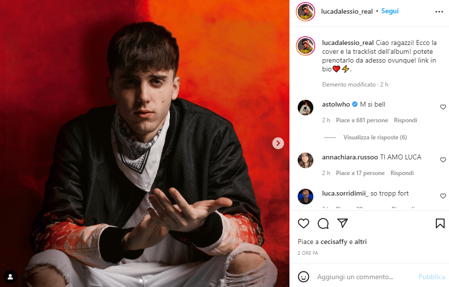 A margine del post di annuncio pubblico, giungono tra i messaggi di consenso e congratulazioni più disparati per LDA di utenti comuni e noti. In particolare emerge l’emoticon a forma di cuore di Aka7even, a cui LDA replica con un “fratellone” seguito da cuoricini. Poi, si fa spazio il commento social di Christian Stefanelli, ex Amici 21 e candidato ballerino ai casting per il video di Bandana: “Lesssss goooo!”.