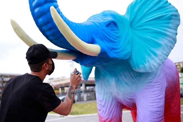 Il quinto elefantino in vetroresina è apparso a Catania nel corso di quest’ultimo weekend di maggio e, come vuole la tradizione di “Liotru d’autore by gloTM”, ha subito la sua trasformazione dal bianco alla versione colorata nel corso di una notte, quando è stato reso opera da Ligama, artista che molti catanesi hanno imparato a conoscere proprio grazie agli elefanti di gloTM e famoso fuori dai confini della città per la sua abilità nel trasformare ruderi in tele dal tratto inconfondibile.