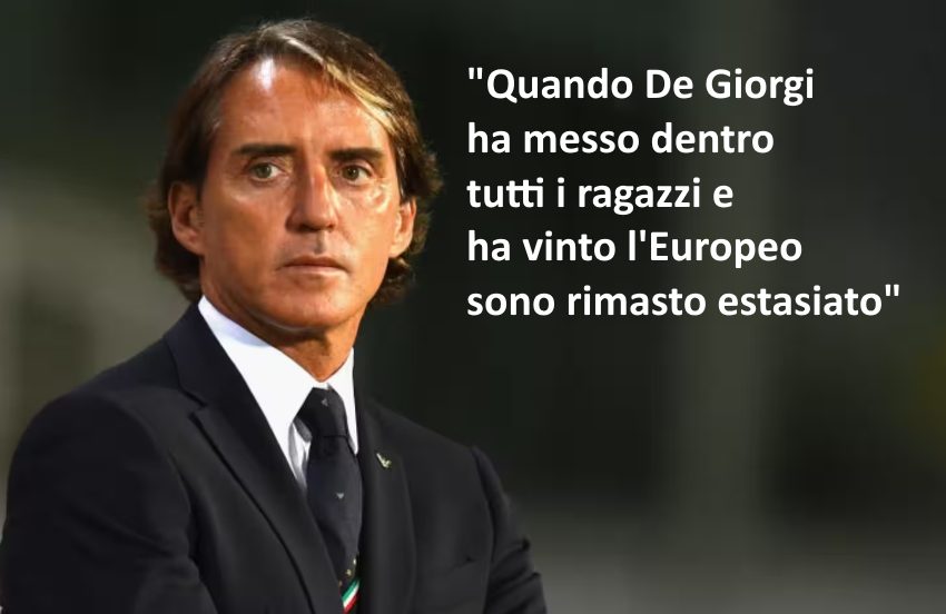 Roberto Mancini, durante l’evento ‘Allenare l’Azzurro’ al Salone d’Onore del Coni, parlando del ct della nazionale azzurra di pallavolo, Ferdinando De Giorgi, ha detto: “Quando (De Giorgi) ha messo dentro tutti i ragazzi e ha vinto l’Europeo sono rimasto estasiato. Avessimo noi la possibilita’ di fare questo… Va cambiata la mentalita’ alla base. Poi devono darci la possibilita’ di avere i calciatori per piu’ tempo”.