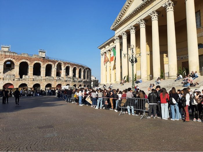 Fan i delirio, in fila in piazza Bra per entrare all’Arena.