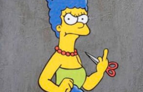 Ad ogni modo l’artista ha realizzato un ulteriore murale, dove campeggia una Marge Simpson intenta a tagliarsi una ciocca di capelli blu ancora più arrabbiata ed agguerrita.