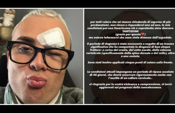 La notizia è arrivata tramite alcune Instagram stories pubblicate nelle ultime ore, in cui l’influencer si è mostrato con il volto tumefatto e un collare cervicale.