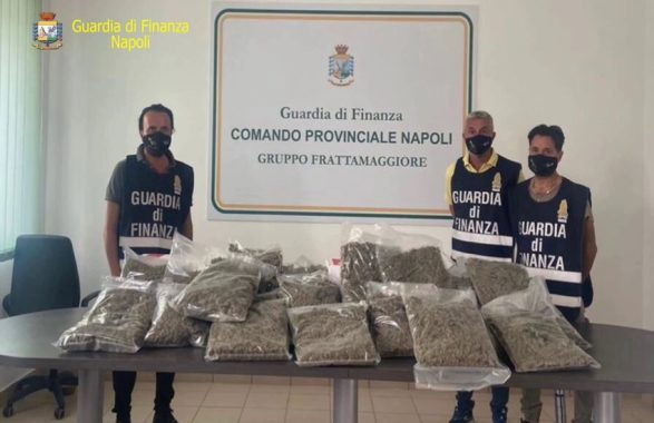 Il Comando Provinciale della Guardia di Finanza di Napoli ha sequestrato 22 chili di marijuana, nascosti in tre pacchi, presso un centro di spedizione di Frattamaggiore.