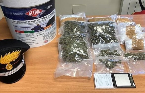 Operazione che ha consentito di rinvenire in mansarda un recipiente per vernici da interni al cui interno erano state celate delle buste di plastica contenenti circa 700 grammi di marijuana e un bilancino elettronico di precisione.