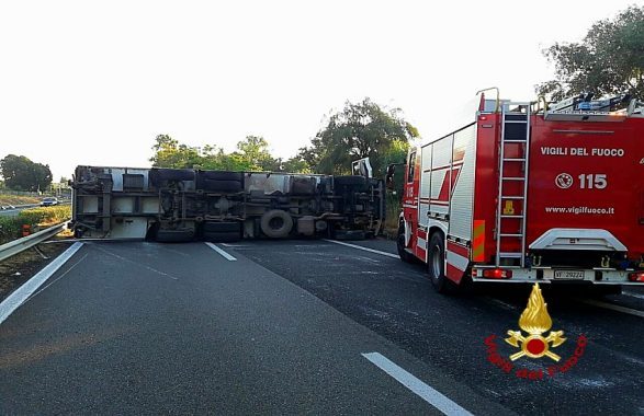 Secondo quanto riferito a noi da loro, il sinistro non ha visto altri veicoli coinvolti, rivelandosi così di tipo autonomo, e la merce che era caricata al suo interno è stata spostata in un altro mezzo vicino.