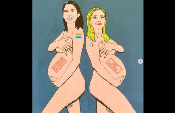 Il Comune di Milano ha rimosso questa mattina, 23 maggio, il murale, ‘Power is female’, opera dell’autore aleXandro Palombo. L’opera raffigura Elly Schlein e Giorgia Meloni – nude e incinte – ed era apparsa appena 24 ore fa in piazza San Babila a Milano. L’opera – spiega l’autore, aleXsandro Palombo – “ha dato fastidio al Comune di Milano perché, a loro dire, è troppo politica e hanno deciso per la rimozione”.