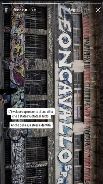 Tra le voci critiche si è fatto sentire anche Fedez, rapper e personaggio televisivo milanese. Con un post su Instagram ai suoi 13,5 milioni di follower, ha pubblicato una foto del centro sociale scrivendo: “L’involucro splendente di una città che è stata svuotata di tutto. Anche della sua stessa identità”.