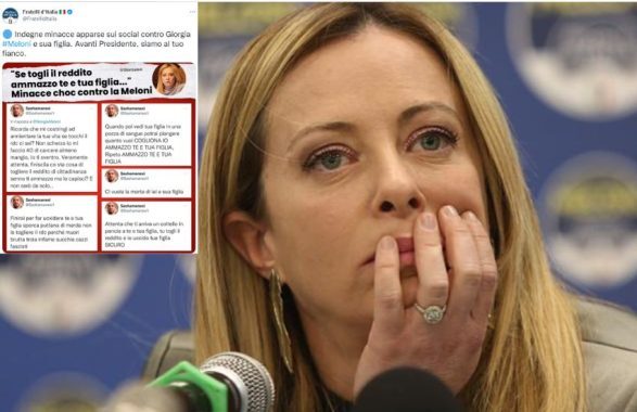 Minacce di morte per la premier Giorgia Meloni arrivate tramite twitter; l’account Twitter di Fratelli d’Italia ha pubblicato un post per rendere pubbliche alcune minacce ricevute da Giorgia Meloni. L’account che minaccia la premier sostiene di twittare da Rosolini (provincia di Ragusa) in Sicilia chiamato @sashamanexi1 e non ancora sospeso dal social network. L’account protesta per il Reddito di Cittadinanza. “Ci vuole la morte di lei e sua figlia“, “Finirai per far uccidere te e tua figlia sporca p**** di m*** non lo togliere il rdc perché muori brutta t*** infame”, «Ricorda che mi costringi ad annientare la tua vita se tocchi il rdc ci sei? Non scherzo io mi faccio 40 di carcere almeno mangio, io ti sventro, Veramente attenta, finiscila co sta cosa di togliere il reddito di cittadinanza senno ti ammazzo ma lo capisci? E non sarò da solo”. Sono questi alcuni dei tweet che si leggono.