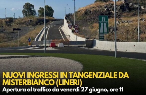 Domani, venerdì 27 giugno alle ore 11, sarà ufficialmente aperto al traffico il nuovo svincolo di ingresso da Misterbianco (Lineri) sulla Tangenziale di Catania. L’annuncio arriva dall’Amministrazione comunale di Misterbianco, in collaborazione con Anas e la Città metropolitana di Catania.
