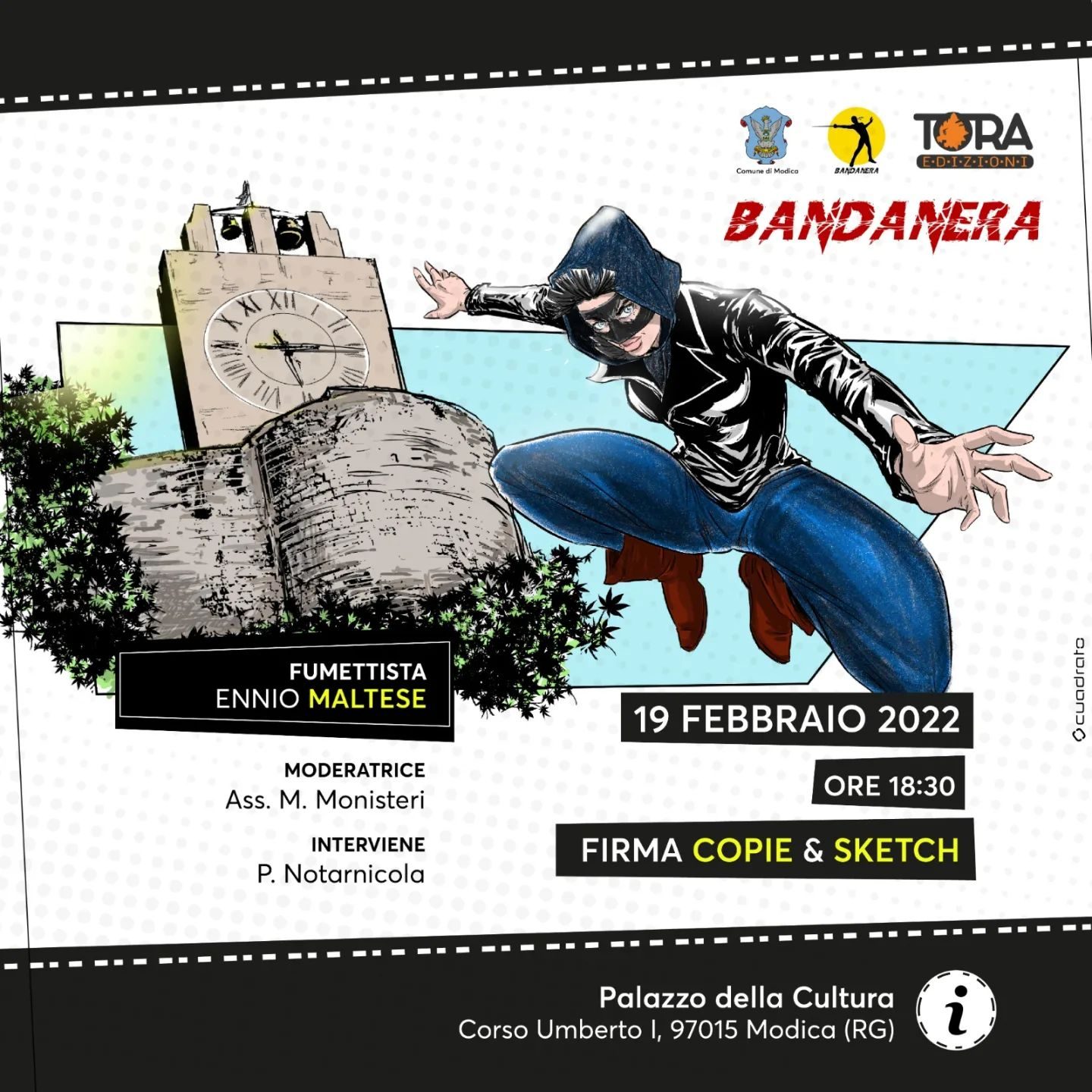 Sabato 19 febbraio un grande appuntamento per gli appassionati di fumetti: il giovane disegnatore modicano Ennio Maltese presenterà presso il palazzo della cultura a Modica il suo “Bandanera“, edito da Tora edizioni e distribuito da Panini. Questo primo volume di Bandanera è stato presentato al Lucca Comics, a Novembre, ma è già previsto un secondo volume per Aprile di quest’anno ed un terzo per l’anno prossimo, interamente illustrato da Ennio.
