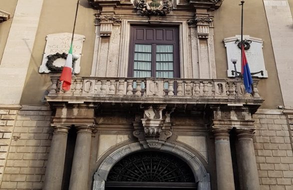 Bandiere a mezz’asta in segno di lutto oggi in Municipio a Catania, per la scomparsa del presidente del Parlamento Europeo David Sassoli.