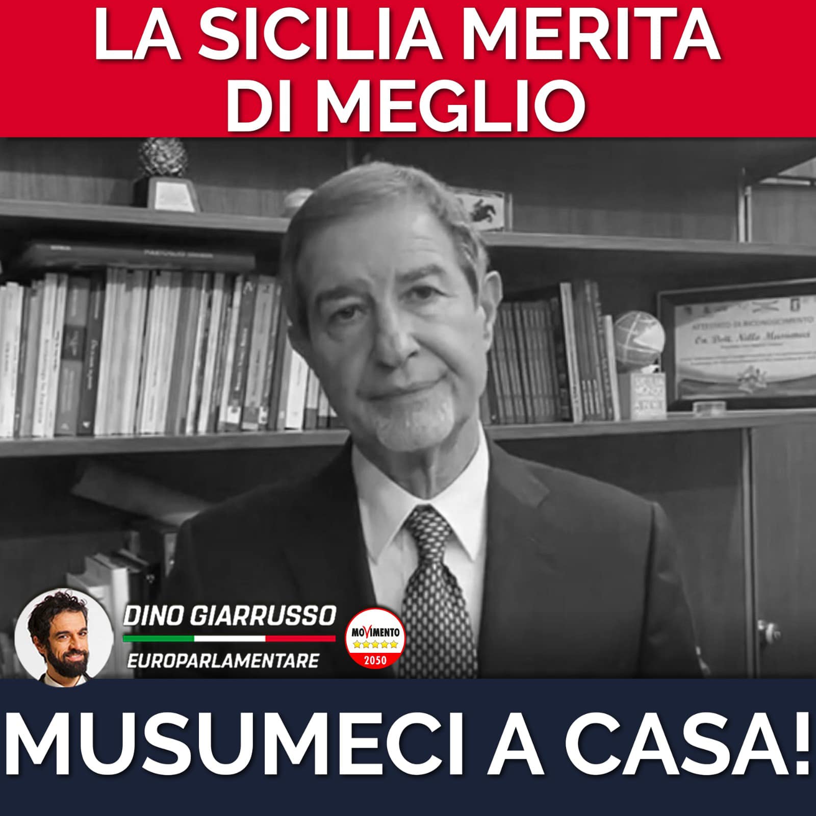 Affermazioni supportate dall’europarlamentare grillino Dino Giarrusso anche con una eloquente elaborazione grafica che sintetizza non soltanto il pensiero dei colleghi di partito, compatti nel divulgare il flop di Musumeci: “Non è facile dire se si tratti più di tragedia o di farsa, quel che invece è certo è che a pagare le conseguenze di questo imbarazzante teatrino con protagonista l’imbarazzante Nello Musumeci saranno ancora una volta i cittadini siciliani. Musumeci è stato di fatto sfiduciato dalla sua stessa maggioranza, che lo umiliato relegandolo al terzo posto fra i rappresentanti siciliani che voteranno quali grandi elettori il nuovo Presidente della Repubblica. Anziché prendere atto del completo fallimento suo e della sua giunta e andarsene, Musumeci come in una pochade di cattivo gusto preferisce sbraitare, insulta i suoi stessi uomini chiamandoli accattoni e disertori, vagheggia di intimidazioni (di che tipo? Da parte di chi? Se in un’isola meravigliosa piagata dalla mafia qualcuno va ad intimidire il Presidente non è il caso di rivolgersi alla magistratura e denunciare?) e racconta pensoso per l’ennesima volta la favoletta di possibili dimissioni. Ma poi, ed ecco l’aspetto tragico e farsesco insieme, svela il millesimo bluff ed annuncia che non si dimetterà, non governerà a casa, non ci darà la possibilità di votare e scegliere un nuovo Presidente e una nuova giunta, macché! L’unica cosa che dice di fare, dopo aver preso un tale ceffone, sarà azzerare la giunta per farne un’altra, sempre guidata da lui. Ma da chi dovrebbe essere sostenuta, questa nuova giunta? Dagli stessi che oggi ha definito accattoni e disertori da “tenere lontani per questioni di igiene” (sic!), dagli stessi suoi alleati che oggi di fatto gli hanno dato il foglio di via e che invece, incredibilmente, nel boschetto della fantasia di Musumeci domani dovrebbero assicurargli di governare in serenità. Ma dove? Quando? Come? Con chi? In Sicilia ci sono problemi SPAVENTOSI, e i siciliani hanno il DIRITTO DI ESSERE GOVERNATI DA PERSONE ONESTE, COMPETENTI E CAPACI. Musumeci e i suoi hanno dimostrato di non esserlo, ed oggi ogni trucchetto da avanspettacolo è caduto di fronte alla fredda implacabile realtà dei numeri. La Sicilia merita di meglio, ed è doveroso che voi tutti sappiate come anche la chiusura delle scuole è dovuta alla totale inettitudine della Regione Siciliana e del Presidente Musumeci (non prendetevela coi sindaci, chiunque siano: la colpa non è loro stavolta!) e arriva nonostante la nostra Barbara Floridia abbia fatto stanziare 92 milioni per tracciamento. Non sono i soldi del governo centrale oggi a mancare, ma la capacità di Musumeci e compagni di spendere quei soldi, di gestire la cosa pubblica, di governare come andrebbe governata l’isola più bella del mediterraneo. Con questa tragica farsa si chiude dunque il sipario sull’esperienza Musumeci e vengono fuori tutte le carenze del centrodestra siciliano, dilaniato da faide interne e dominato da mezze figure. Noi siciliani meritiamo di meglio, e dobbiamo iniziare fin da adesso a lavorare per il futuro”.