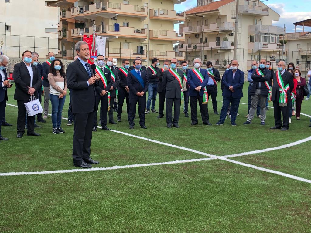 Il presidente della Regione Nello Musumeci ha inaugurato il nuovo stadio di calcio a Santa Teresa Riva. Da oggi la F.C. Jonica, la squadra di Santa Teresa Riva, compagnia del Messinese che disputa il Campionato di calcio di Eccellenza, potrà esibirsi nello stadio di contrada “Bucalo”, interamente ristrutturato grazie al finanziamento di un milione e 335 mila euro da parte della Regione Siciliana.