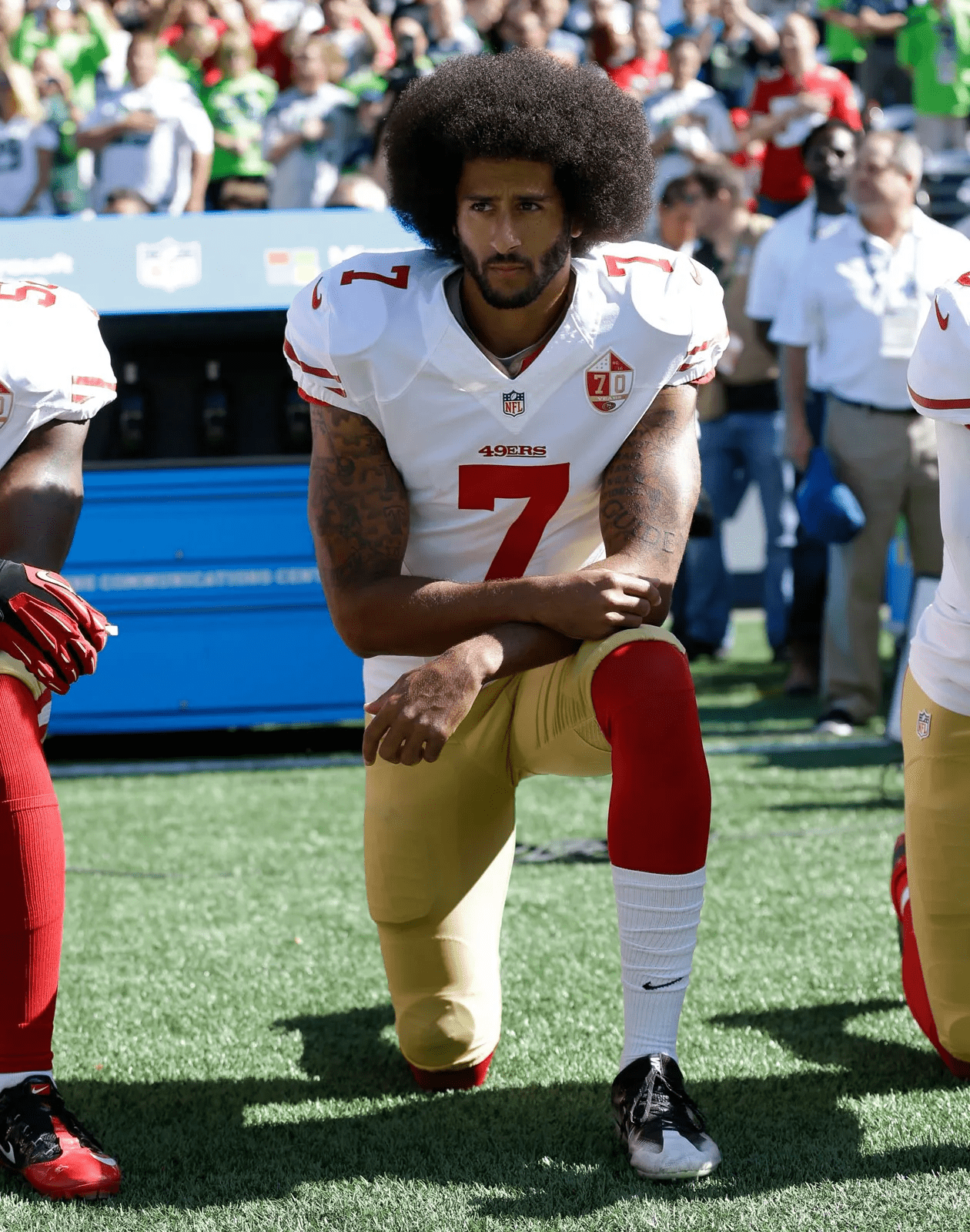 La protesta di Kaepernick ha portato a una serie più ampia di proteste contro l’inno nazionale. Da allora è stato adottato da giocatori sportivi in paesi di tutto il mondo, inclusa l’associazione calcistica del Regno Unito, in solidarietà con la protesta di Kaepernick contro il razzismo, ed è stato visto in tutto il mondo in contesti non sportivi come le proteste di Black Lives Matter.