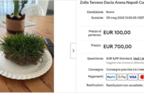 Navigando in rete, infatti, si possono trovare annunci di tifosi che rivendono una zolla di terra del Dacia Arena al prezzo di 700 euro. La base d’asta è di 100 euro per aggiudicarsi un pezzo di manto erboso calpestato dai giocatori del Napoli. Sicuramente una ghiotta possibilità per qualche ultras che spera di guadagnare dalla vittorio dello scudetto anche in questo modo.