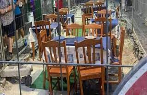 La foto è divenuta virale sui social e tutto questo è accaduto all’interno del cantiere dove ci sono lavori per la manutenzione stradale in via dei Tribunali, lato Sedil Capuano. Per la precisione dal ristoratore sono stati apparecchiati tre tavolini, disposti regolarmente con sedie e tovaglie e pronti ad accogliere i clienti del sabato sera e non solo, fra le transenne in tutti i lati.