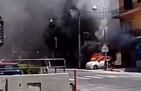 Un fumo denso e nero ha invaso tutta l’area ed un’auto parcheggiata nelle vicinanze del locale ha preso fuoco.