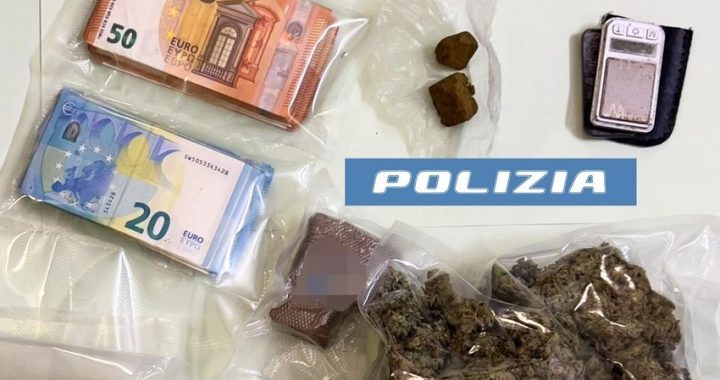 All’interno dell’abitazione i poliziotti hanno rinvenuto diversi involucri in plastica trasparente con all’interno sostanza stupefacente del tipo marijuana per un peso complessivo di 504 grammi, di hashish per un peso complessivo di 167 grammi e di cocaina per un peso complessivo di 0,75 grammi.