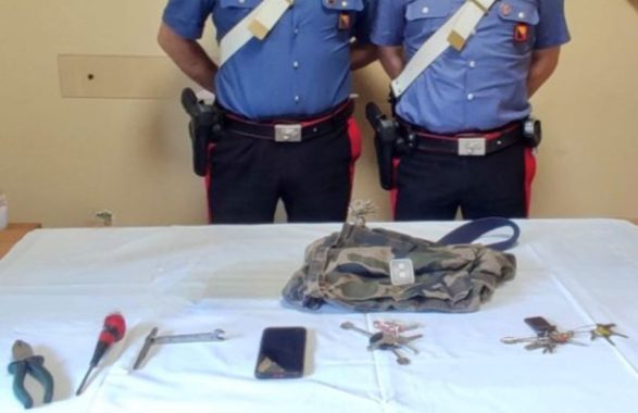 All’interno dell’autovettura del ladro invece, una Ford Ka, i militari hanno scoperto sotto il sedile lato guida un cassetto, creato artigianalmente, all’interno del quale erano occultati un grimaldello, un disturbatore di frequenze radio (il cosiddetto “jammer”) e 17 chiavi di sicurezza (di altre abitazioni), verosimilmente provento di altri analoghi furti.