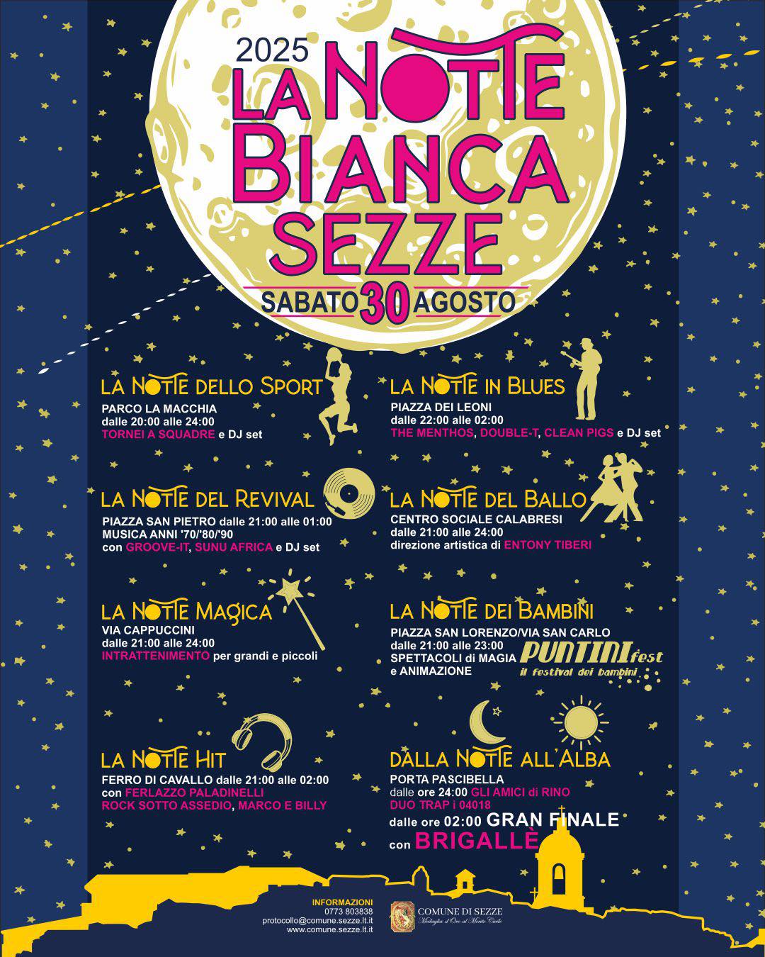 #Sezze #NotteBianca #Estate2025 #EventiLatina #Musica #Sport #Famiglie