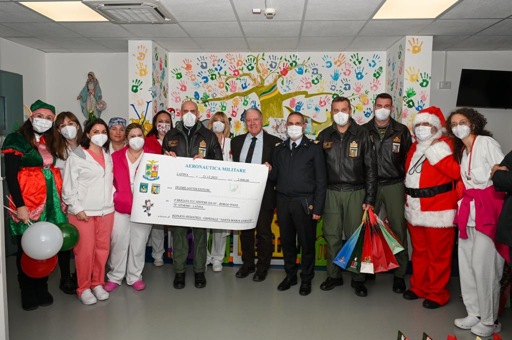 In questi giorni una rappresentanza del personale del 70° Stormo di Latina e della 4a Brigata Telecomunicazioni e Sistemi per la Difesa Aerea e l’Assistenza al Volo di Borgo Piave, si è recata presso l’Ospedale “Santa Maria Goretti” per la distribuzione dei doni ai bambini che, in questi giorni di festa, sono ricoverati presso il Reparto di Pediatria.