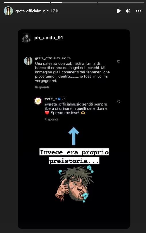 La stessa McFit ha risposto in modo piccato alla Squillace con queste parole: “Sentiti sempre libera di urinare in quelli delle donne. Spread the love”.