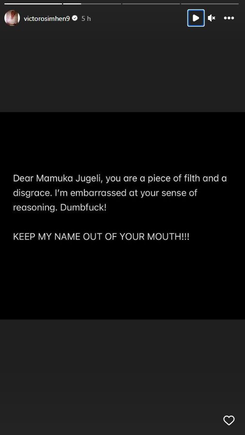 L’attaccante nigeriano, attualmente impegnato con la sua Nigeria per la Coppa d’Africa in Costa D’Avorio, ha tuonato dal suo profilo Instagram dove ha pubblicato una Storia al veleno con queste parole: “Caro Mamuka Jugeli, sei un pezzo di sporcizia e una vergogna. Sono imbarazzato dal tuo modo di ragionare. Stupido! Tieni il mio nome fuori dalla tua bocca!”.