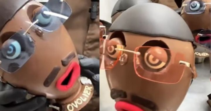 Sulla “testa” dell’uovo c’è un cappellino, poi ci sono i caratteristici baffetti, la bocca contornata di rosso e gli occhi realizzati in cioccolato, impreziositi da un paio di occhiali veri. Alla base dell’uovo c’è la scritta “Ovolier” accompagnata da una nota musicale, entrambe rigorosamente realizzate con lo zucchero.