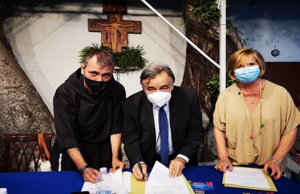Nel corso della serata sindaco e assessora insieme a fra Mauro Billetta, hanno firmato il protocollo d’intesa tra il Comune di Palermo e la parrocchia Santa Agnese V.M. per la promozione di interventi di Mediazione e Giustizia Riparativa. Presenti anche fra Salvatore Zagone, ministro provinciale dei Cappuccini di Palermo.