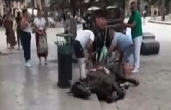 A Palermo questa mattina (25 Luglio), a Piazza Verdi, di fronte al Teatro massimo, un cavallo al traino di una carrozza per turisti è svenuto per un improvviso malore, probabilmente a causa del caldo. Un fatto orribile e indecente per una città che punta alla modernità e all’avanguardia.