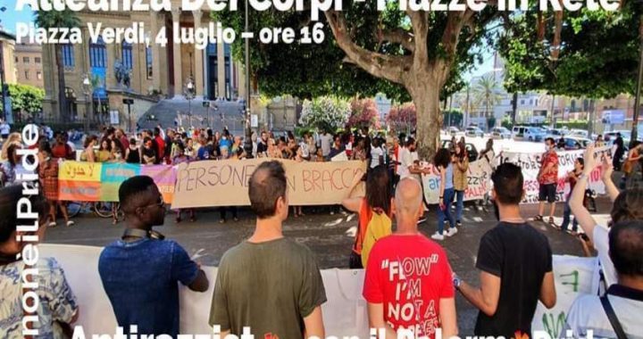 Palermo Pride in forma diversa. Appuntamento dalle 16 in piazza Verdi e in altre nove piazze. Sabato 4 luglio, non potendo organizzare il classico corteo, a causa delle misure di sicurezza per il Covid-19, “una molteplicità di eventi costruiscono una grande manifestazione diffusa in oltre dieci piazze di Palermo dal titolo Alleanza dei corpi – Piazze in rete #nonèilPride e programmata per sabato a partire dal pomeriggio: in collaborazione con circoli, associazioni e movimenti in una contaminazione di idee e racconti, ogni evento sarà gratuito, si svolgerà nel rispetto delle norme anticontagio e avrà una propria regia ma la conclusione sarà unica e a cura del Palermo Pride“, scrivono sul loro sito gli organizzatori.