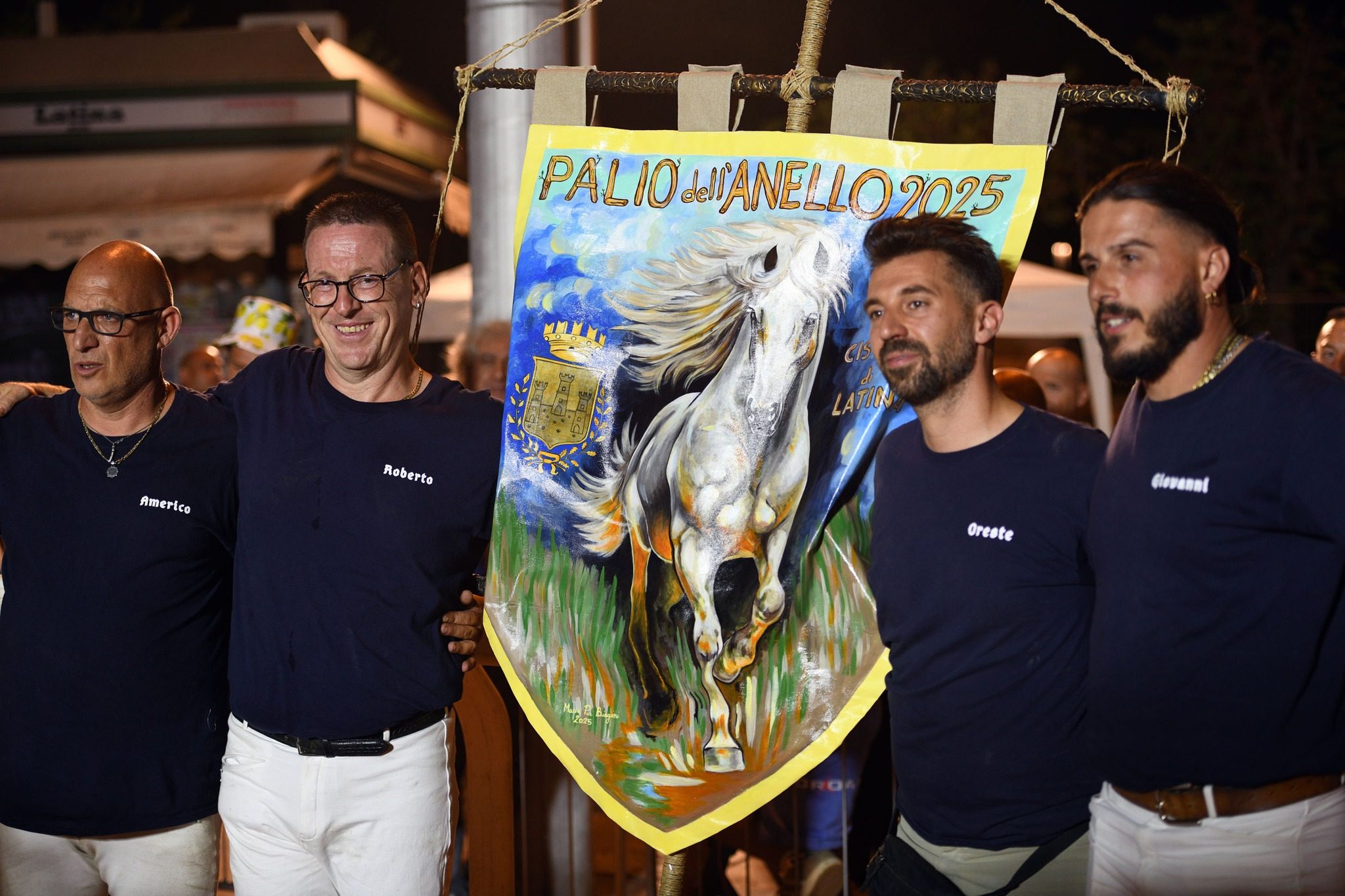 Un’altra edizione da incorniciare per il Palio dell’Anello, che il 10 agosto ha riempito le strade di Cisterna di Latina di adrenalina, passione e tradizione. Il Corso della Repubblica si è trasformato in un’arena, dove la sfida tra i 32 cavalieri provenienti da 10 comuni ha regalato momenti di pura emozione e grande spettacolo. Alla fine della serata, a conquistare il prestigioso stendardo artistico, realizzato da Maria Pia Biagini, è stata la squadra di Cori, che ha vinto con quattro anelli centrati.