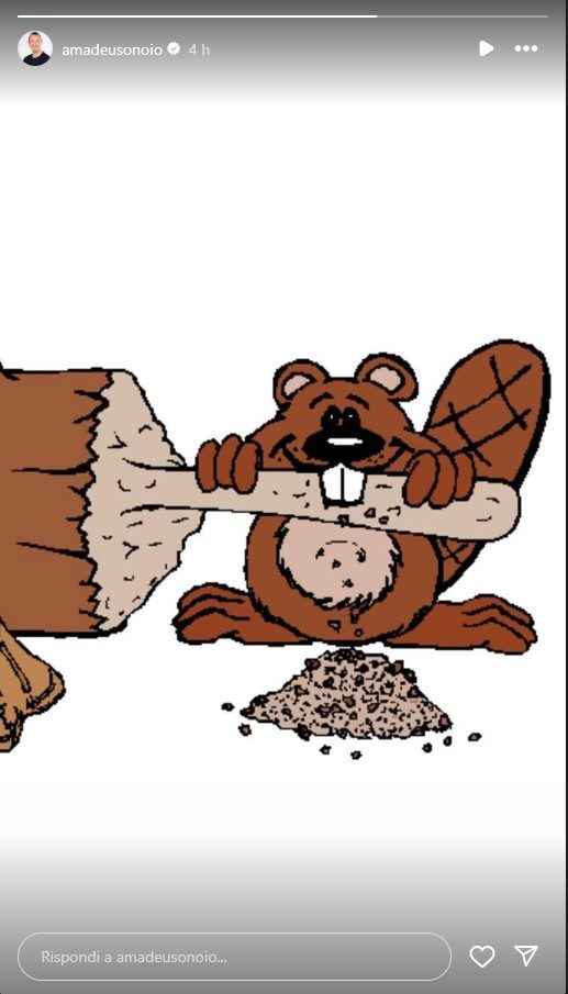 Come ha reagito Amadeus? Con una Storia su Instagram che apparentemente non significa nulla, ma che guardandola con occhi maliziosi ha un significato ben preciso. Nella Storia c’è un castoro che rosicchia, o meglio, rosica un tronco. A quanto pare Ama, anche lui senza tanti giri di parole, ha dato del “rosicone” a Bonolis, anche se in modo simpatico.