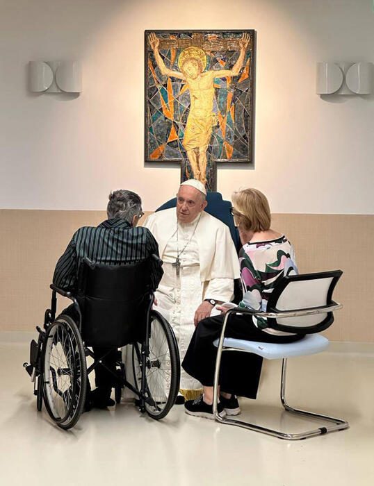 Sono le prime immagini del Papa in ospedale da quando è stato ricoverato lo scorso 7 giugno.