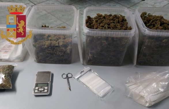 La perquisizione è stata estesa all’abitazione di V.A. con esito positivo; all’interno del ripostiglio, i poliziotti hanno rinvenuto sostanza stupefacente del medesimo tipo, contenuta all’interno di 4 recipienti in plastica trasparente, per un peso complessivo superiore al chilogrammo. Trovati anche un bilancino di precisione, una forbicina ed altro materiale utilizzato per il confezionamento.