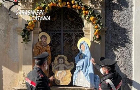 I Carabinieri del Nucleo Operativo della Compagnia di Paternò hanno deferito in stato di libertà, per il reato di furto aggravato, un uomo di 59 anni, che si sarebbe reso responsabile del furto, perpetrato nella notte tra il 29 e il 31 dicembre, della sagoma di “Gesù Bambino” e della “Madonna”, posti entrambi all’interno del presepe esposto nella via Roma di Paternò ed appartenenti alla Chiesa di “Santa Margherita”.