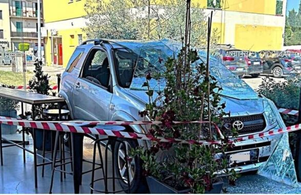 Nel tentativo di evitare il veicolo in retromarcia, la conducente avrebbe sterzato bruscamente, perdendo il controllo dell’auto e andando a sfondare le ampie vetrate della pasticceria. Il SUV è entrato direttamente all’interno dell’esercizio commerciale, seminando il caos.