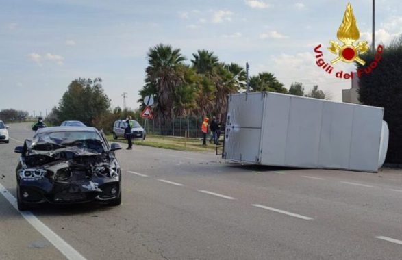 Dopo gli incidenti, anche gravi, dei giorni scorsi, ancora paura nel Salento per uno schianto tra due mezzi. Il drammatico sinistro si è verificato nella tarda mattinata di oggi, intorno alle 13, sulla circonvallazione di Veglie, nella periferia del Paese, vicino alla rotatoria che conduce a Porto Cesareo e Salice Salentino. In questa tratto di Nord Salento si è verificato, infatti, un terribile schianto tra un camion e una Bmw. Cause ed esatta dinamica dell’incidente, per ora, sono alquanto sconosciute e sono al vaglio della Polizia Locale di Veglie che è intervenuta sul luogo dello scontro.