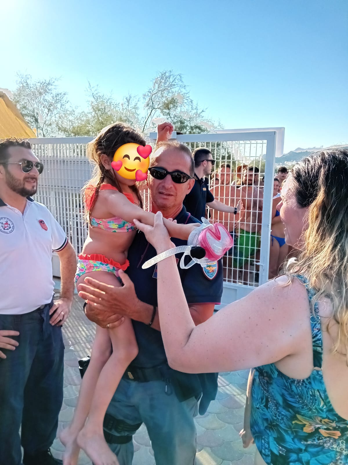 In pochissimo tempo è stata messa in moto la macchina della sicurezza che ha permesso di ritrovare la bambina in tempo record presso il lido “Holiday beach” in località di Rivabella. La piccola aveva percorso oltre due chilometri e mezzo sul bagnasciuga tra i bagnanti, senza rendersene conto e probabilmente impaurita dal fatto che non riusciva a trovare la sua famiglia aveva iniziato a piangere disperatamente. Per fortuna una signora ha scorto la bambina in difficoltà l’ha accolta sotto il proprio ombrellone, cercando di consolarla. Nel frattempo i poliziotti, che intanto stavano battendo palmo a palmo le spiagge, sono stati avvistati dalla donna che aveva soccorso poco prima la piccola e che l’ha così affidata alle loro mani. Gli agenti, a bordo della pattuglia automontata dell’RPC, hanno subito tranquillizzato via radio i genitori, con le parole della bimba: “Papà sto arrivando con la macchina della Polizia”!!! La bambina è stata riabbracciata subito dopo dai genitori tra gli applausi e i cori entusiasti di ringraziamento dei bagnanti agli agenti intervenuti. Giorgia Maria, questo il nome della piccola, intanto, è stata visitata dal personale sanitario, intervenuto per dare supporto medico ai genitori in stato di shock, ed è stata trovata in perfetto stato di salute dopo la tanta paura nel Salento. Una vicenda conclusasi in fretta e a lieto fine grazie alla collaborazione tra le persone e le forze dell’ordine.