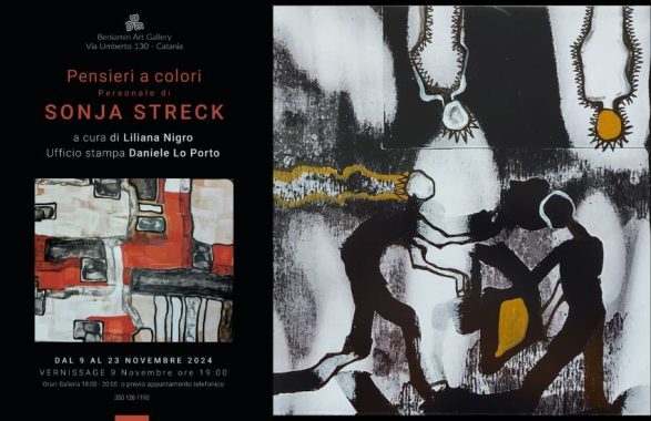 Circa quaranta opere, di grandi e piccole dimensioni, alcune con la tecnica mista della pittura su fotografia, una sorta di rassegna antologica della sua lunga attività, saranno proposte dal 9 al 23 novembre nella Beniamin Art Gallery, di via Umberto, 130 a Catania. Liliana Nigro, la curatrice anomala e trasversale della mostra di Sonja Streck, la definisce “anima colorata, capace di trasportare stati d’animo in colori, propone la vita dentro una tavolozza segnata da sfumature e ricca di emozioni, compone visioni di identità perdute che si racchiudono solo sull’altare dell’ arte”.
