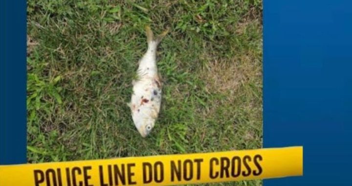 La vicenda ha provocato sorrisi e ironia nello stesso dipartimento di polizia, che ha voluto divertirsi sul suo profilo social dove ha condiviso non solo il “cadavere” del pesce, ormai senza vita sull’erba con tanto di linea gialla, ma anche il disegno del falco pescatore affiancato dalla scritta “L’identikit del sospettato”.