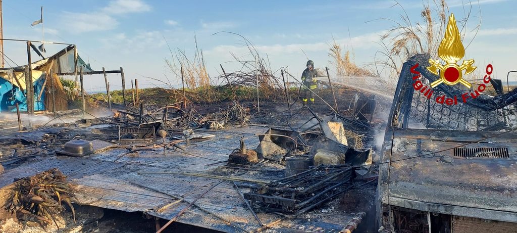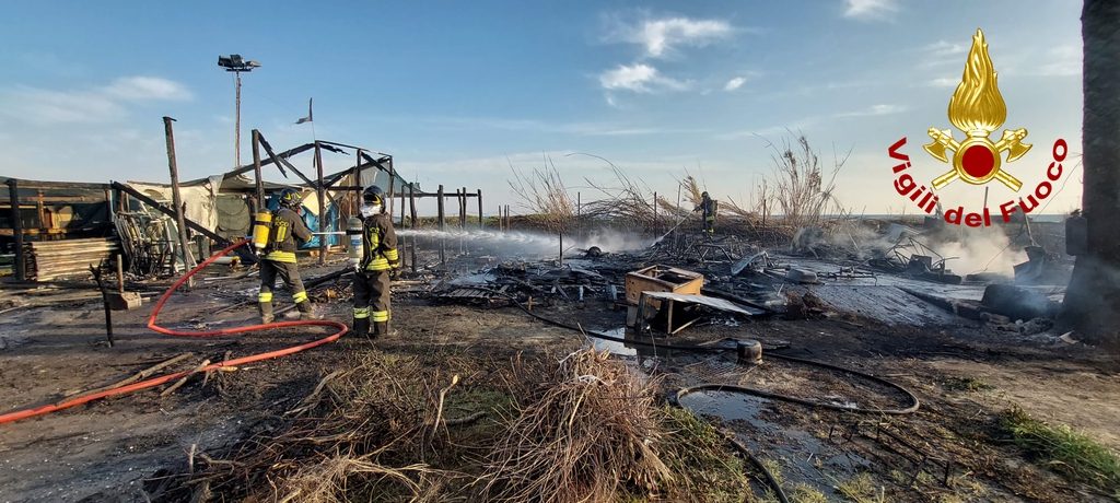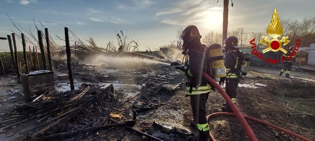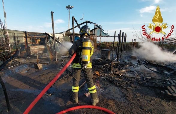 A bruciare due baracche ed un camper da tempo, ormai, rifugio per tre senza tetto.