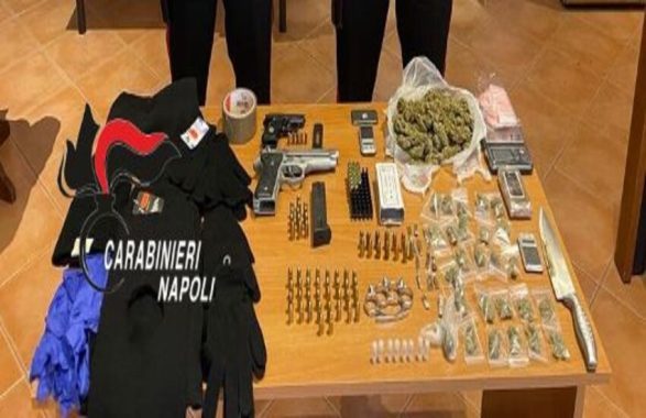 I carabinieri di Pomigliano, con il supporto dei militari del Nucleo Cinofili di Sarno, hanno arrestato per detenzione di droga ai fini di spaccio e detenzione illegale di armi ed esplosivi una 33enne del posto e suo figlio, non ancora 18enne ma già noto alle forze dell’ordine.